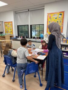 Mrs. Valente’s 2nd grade class recently read a book entitled, The Arabic Quilt, An Immigrant Story, as part of their Advancing Literacy Program. They learned about the importance of culture and language. The class enjoyed the story and Mrs. Syed and her sister came in to help the students write their names in Arabic so they could create their own quilt.