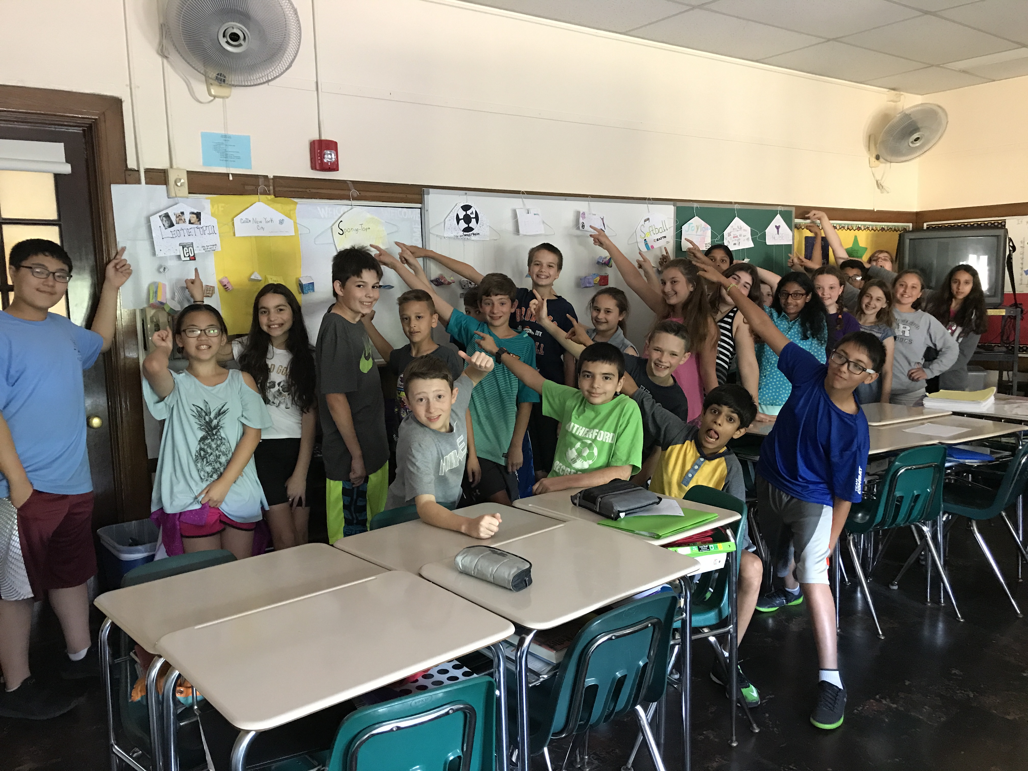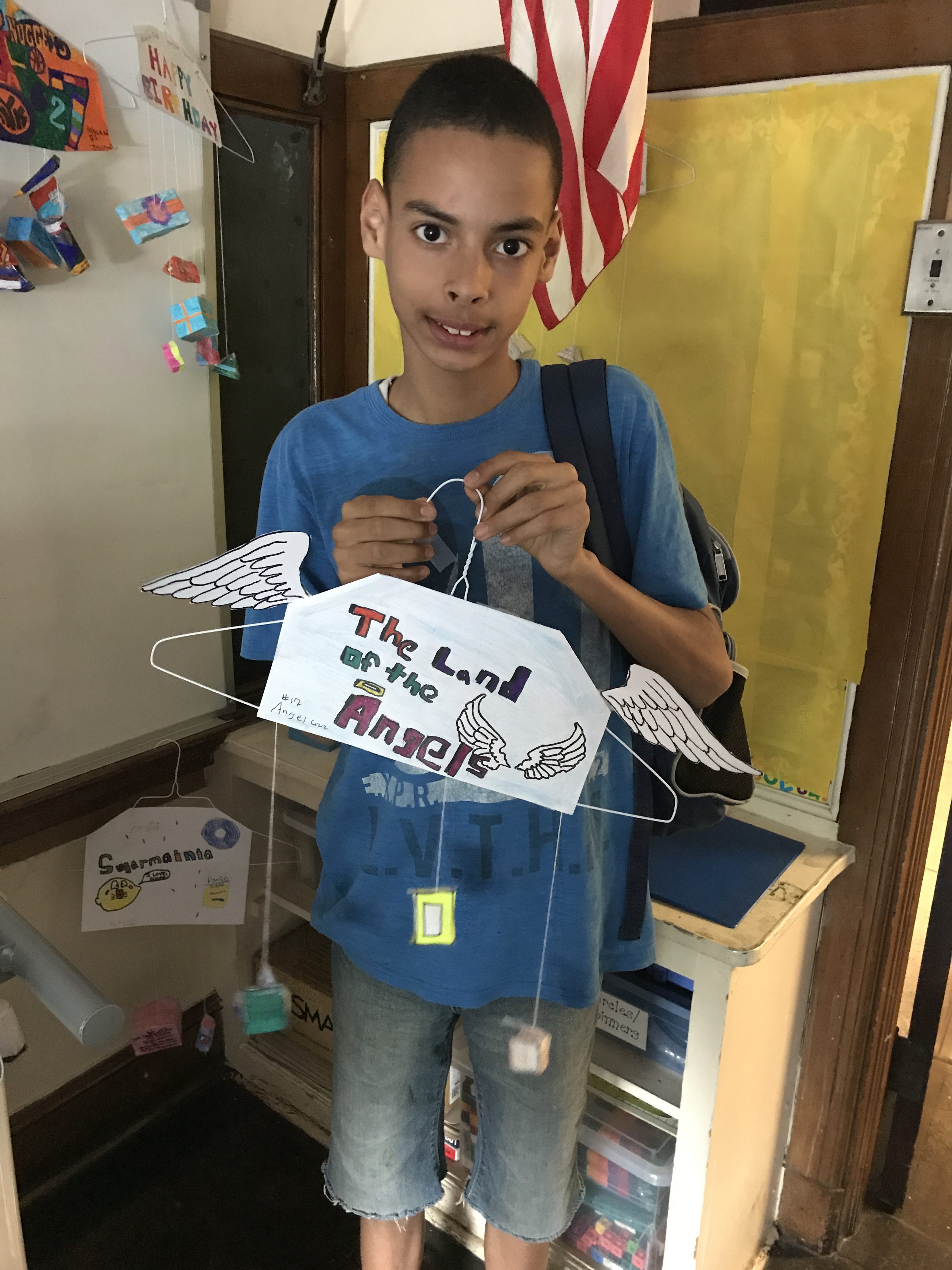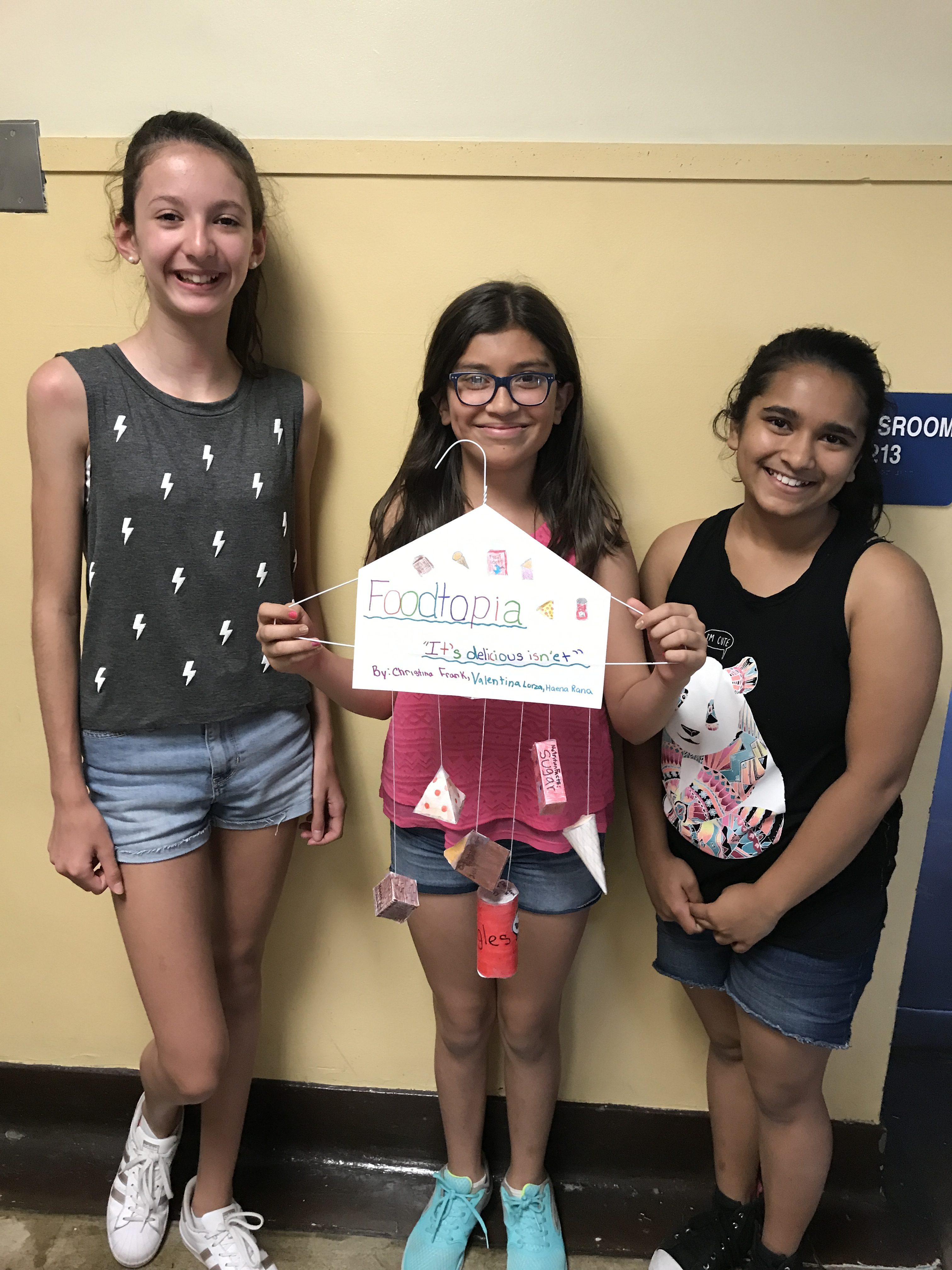 The students of Ms.Scrimenti and Mrs. Bongiovanni’s homerooms finished their culminating geometry math projects. The assignment was to create “Net Mobiles” by first figuring out a theme, calculating volume and surface area, and finally, building the nets into 3-Dimensional Shapes. The students worked so hard and came up with awesome themes! They were very excited to show off their “Net”opias! Some created themes like “Foodtopia” and “Sponge-Topia” while others created mobiles of themselves, like “Otopia” which was the world of Olivia Walker one of Mrs. Bongiovanni’s students.