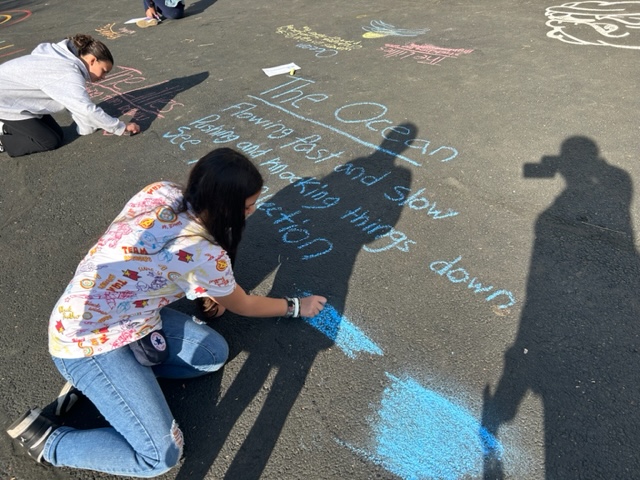 Sixth Graders in Mrs. Manocchio & Ms. Levine’s ELA classes took to the pavement to express their love of poetry and to celebrate Earth Day. The students have been learning how to write various poem styles, including haiku poetry. They each wrote several haikus and selected their favorite to write in sidewalk chalk outside on the schoolyard blacktop for all their schoolmates to read and enjoy. This was a great opportunity for students to express their appreciation for nature in a creative way and to share their poetry with those around them. Happy writing and happy Earth Day, Pierrepont!